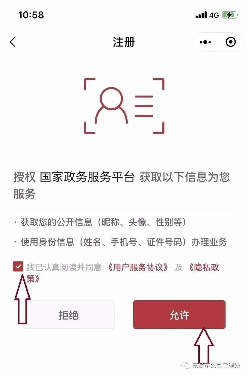 3.勾选“我已认真阅读并同意”选项,点击“允许”;