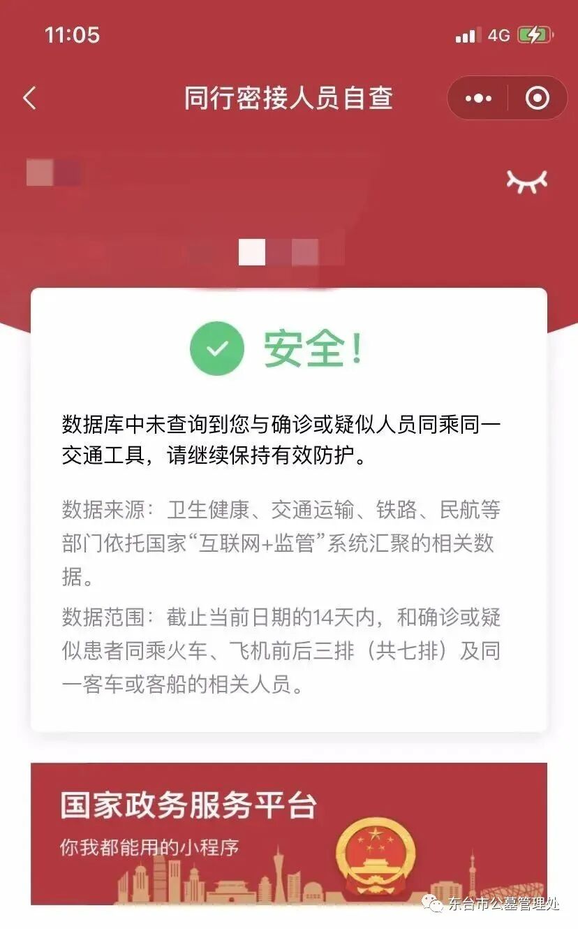目前,国家政务服务平台推出同行密接人员自查服务,用户可上“国家政务服务”微信小程序免费查询,查一查更安心。
